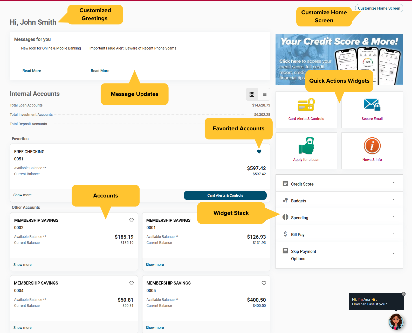 Your online banking will now greet you personally, with a welcome message right at the top of your screen. Plus, the new Widget Wallet feature allows you to customize and arrange your most-used tools, so your favorite functions are just a click away.